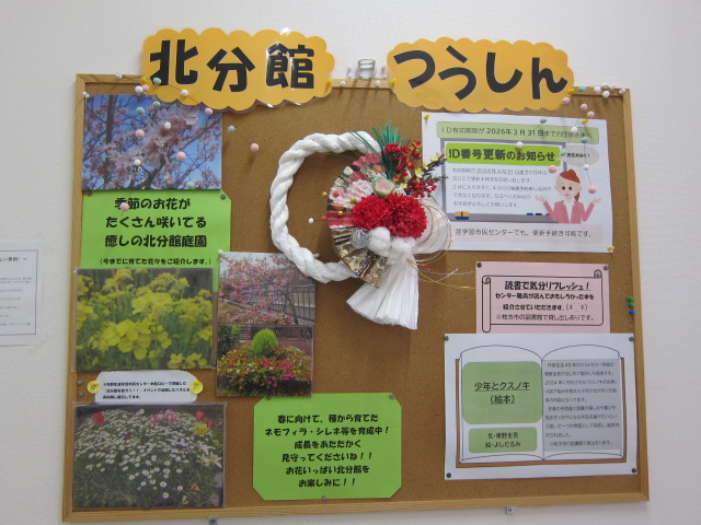 北分館つうしん1月号では、北分館の庭園で咲いている季節のお花を紹介しています。