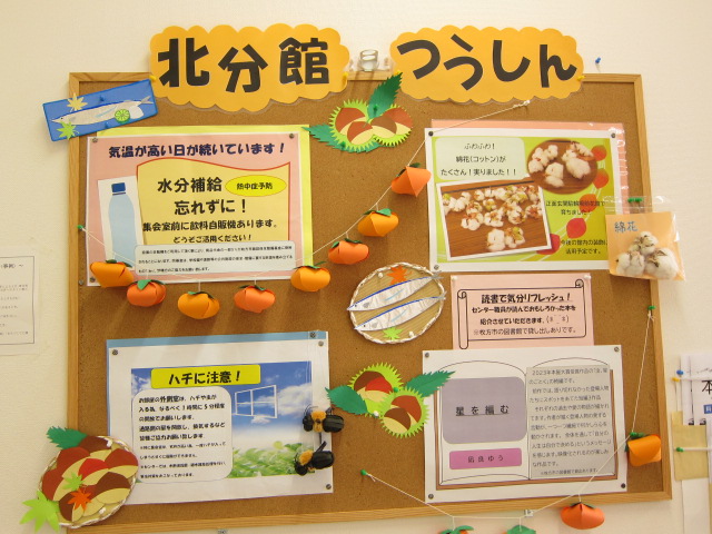 北分館つうしん9月号では、秋の装飾と共に綿花(コットン)の収穫の様子をお届けしています。
